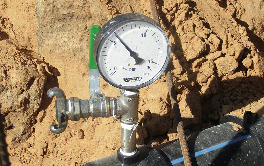 - После выхода трубы в стартовый котлован проверяем целостность путем контрольной опрессовки..
